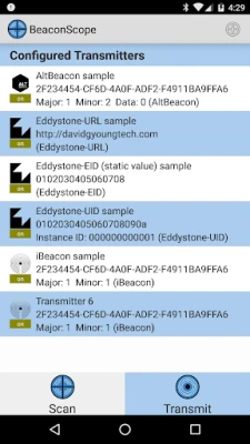 Transmits 10+ beacon signals simultaneously (on supported devices) Keeps transmitting even when the app is in the background, until you tell it to stop.