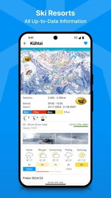 The bergfex: ski, snow & weather app provides you with detailed information about all ski resorts in Austria, Switzerland, Germany, Italy, France, Slovenia, Poland, the Czech Republic, Slovakia, and Croatia. Get updates on snow depths, weather, webcams, piste maps, accommodations, and much more.