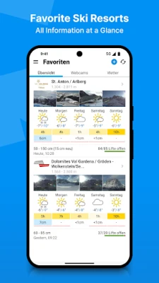 • Favourites - all your 'best-of' ski resorts at a glance