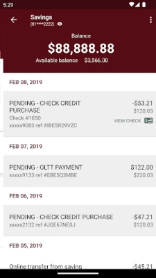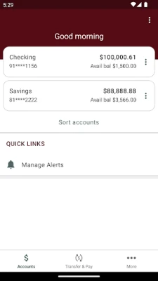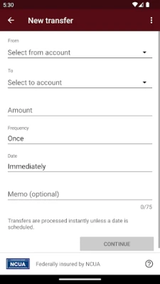 Features: • Check your account balances • Review recent transactions • Transfer funds between your accounts • Click on forgot password to change your password.