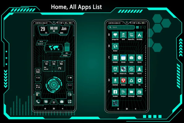 Immerse yourself in a world of color with millions of theme color options. Watch as your entire launcher transforms to exude a futuristic hitech vibe.
