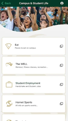 • Safety: Quick access to campus police, emergency preparedness, and Hornet Safety