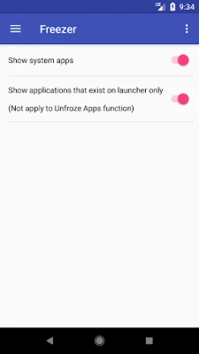 Almost all modern smart phone device come with system application pre installed, including which we don't want. This application could help freeze (disable) application easily, so it wont run in background to waste system resource, feature to unfreeze (enable) application is also included so user could choose to enable it when needed.