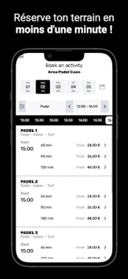 Fini la corvée de réservation ! Avec l'application tu n'as plus qu'à accéder aux créneaux disponibles et à en choisir un. Le club recevra alors automatiquement ta réservation.