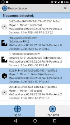 * Scans all types of Bluetooth LE Beacons including iBeacon, Eddystone and AltBeacon * Provides beacon quality report including signal level, packets per second, detection rate, etc.