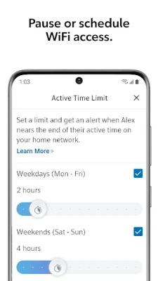 • Pause or schedule WiFi whenever you choose – create Downtime Schedules or set Active Time Limits