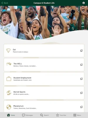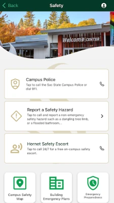 • Safety: Quick access to campus police, emergency preparedness, and Hornet Safety