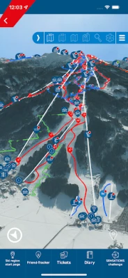 Use the navigation from A to B in the ski area. In addition, you can record your ski day in the diary using the piste tracker as well as GPS tracking, review it again and again and share it with friends. The friend tracker offers the perfect overview of your friends in the ski area, so you can always find each other again directly.