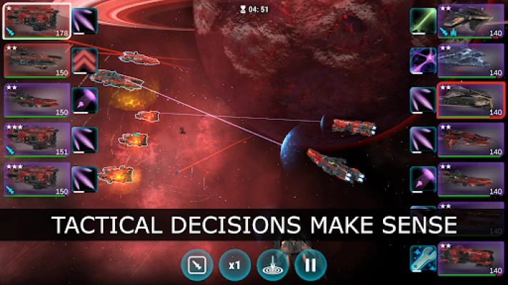 Upgrade your ships using a variety of methods – equip them with modules or level up their strength. Merge the squadrons to make them more powerful.
